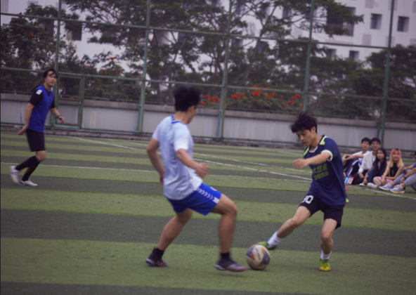 2023年3月19日下午,深大40周年校庆暨数学学科40周年庆荔园校友体育活动第1场:校友男子足球友谊赛在粤海校区南区体育馆天台足球场举行,校友与在校师生以球会友,欢聚荔园。学院党委副书记张国强和校友、在校师生观看了比赛。