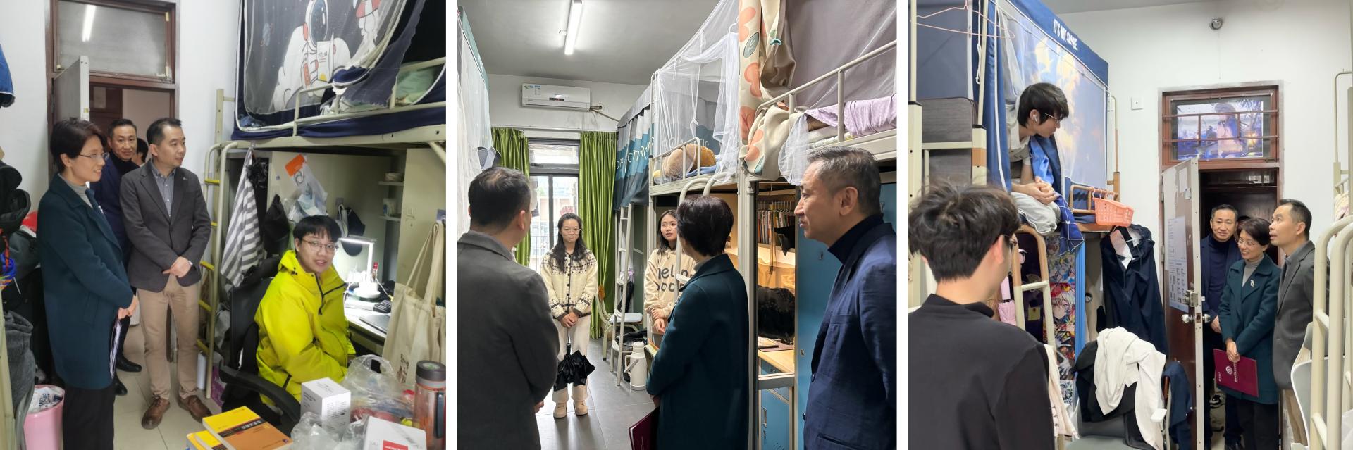 党委书记王瑜、院长、党委副书记叶星及辅导员一行于3月7日深入风槐本科生宿舍与蓬莱研究生宿舍,走访慰问各年级学生,围绕学业发展、生活安全、心理健康等主题与同学们展开交流。